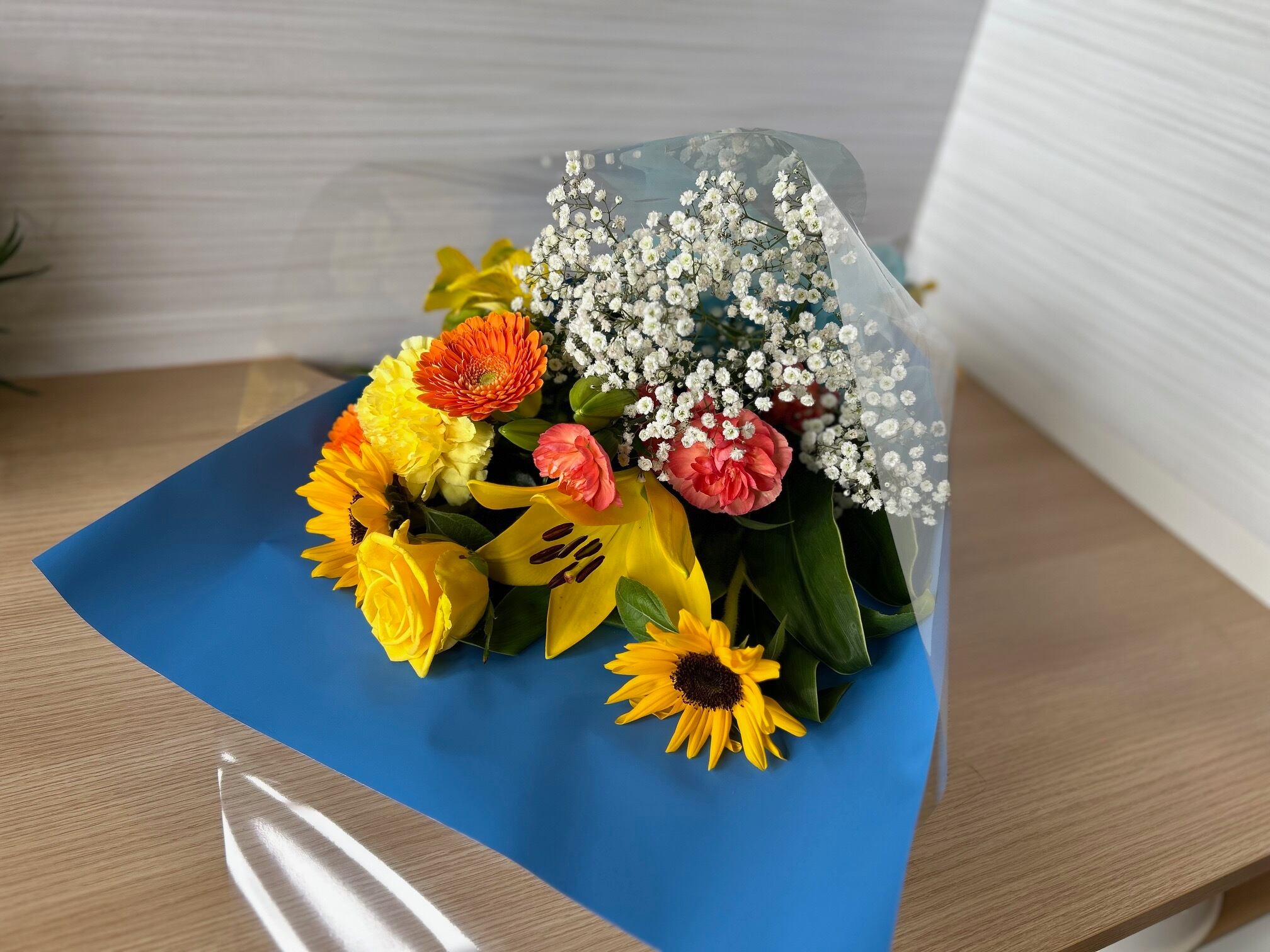 御祝花束 スタンダード ひまわりの入った花束 E28