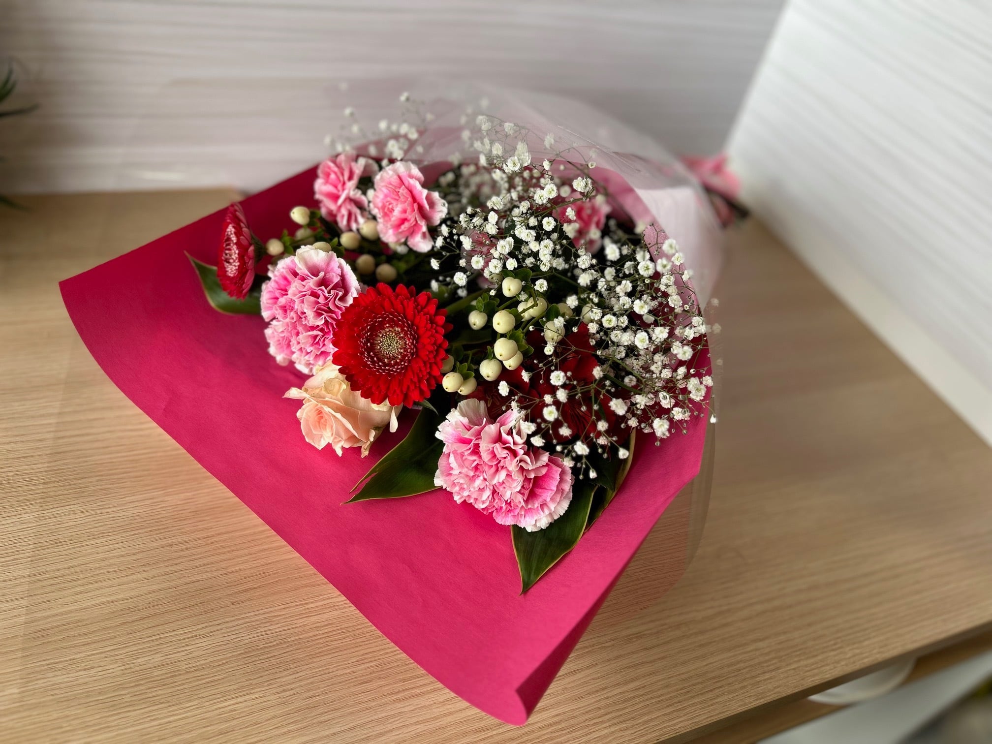 【店舗受取】御祝花束 スタンダード 鮮やかなピンクの花束 E29