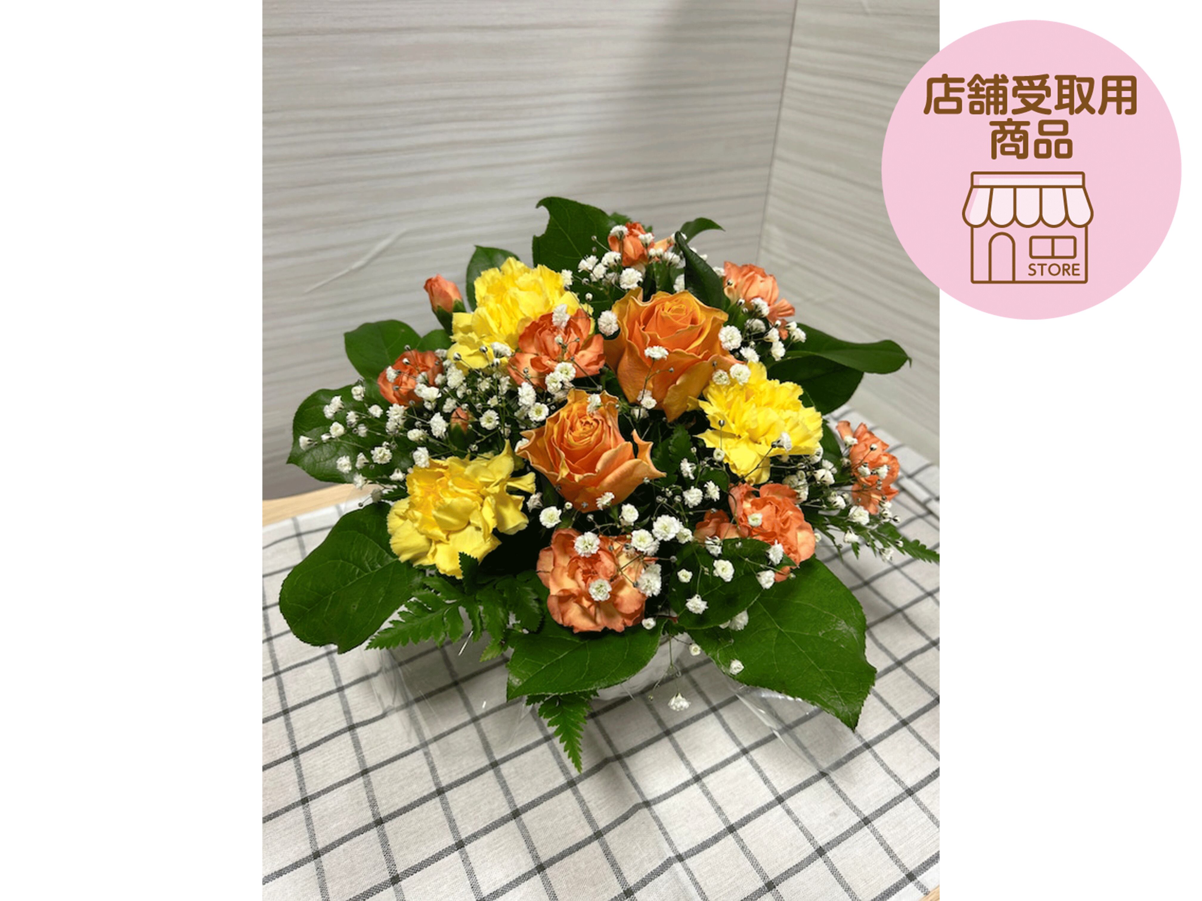 【店舗受取】御祝アレンジ スタンダード バラを入れた黄色・オレンジ系アレンジメント E18